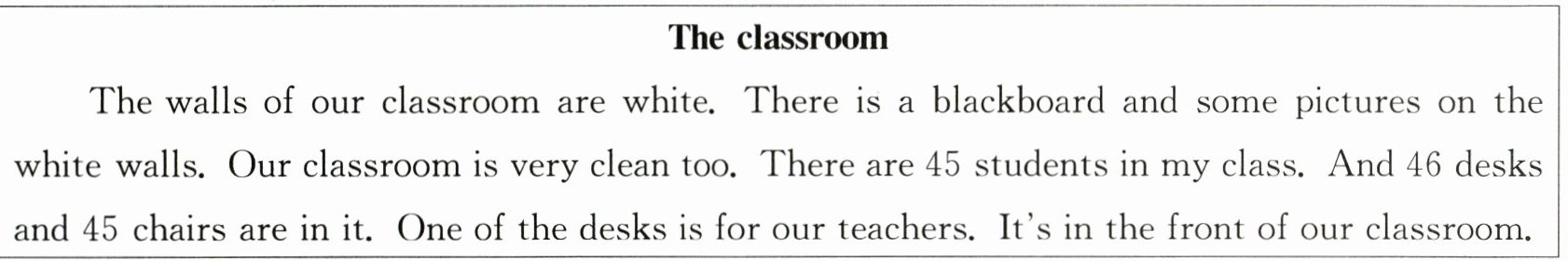 Our school isn't very big, but it has a beautiful garden. Some trees and flowers are in it. Now I'm in Class 2, Grade 7. The classroom is big and tidy.