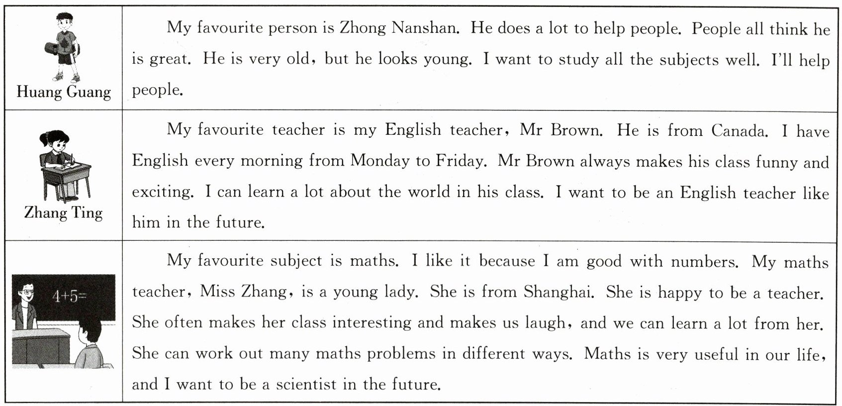 ) 43. The material mainly tells us ____.A. three students’ favourite subjects
