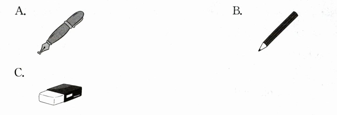 Jack has four black and brown pens. Ted has four white erasers. They share pens and erasers with us.