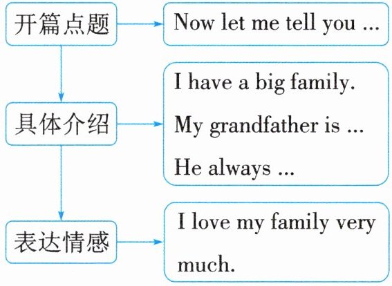 ③在写作时,首先开篇点题;然后按长辈到晚辈的顺序介绍家庭成员;最后表达情感。