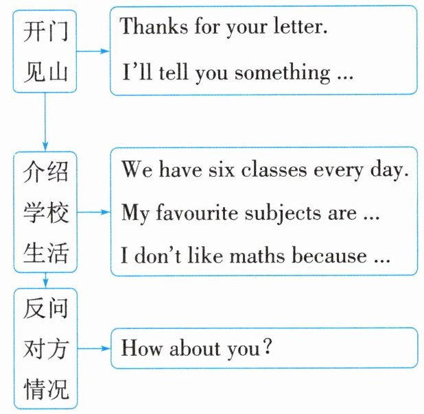 的学校生活;最后反问对方情况。