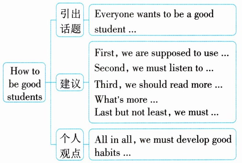 ③ 在写作时,第一步引出话题;第二步对如何成为好学生提出具体的建议;第三步发表个人观点并总结全文。
