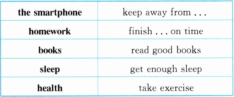 First, we are supposed to use the smartphone in a proper way. We'd better keep away from it if it takes up most of our time. Second, we must listen to the teacher carefully in class. After school, we should finish our homework on time. Third, we should read more good books, because reading can open our eyes and make us knowledgeable. What's more, we should get enough sleep. Last but not least, we must take exercise every day. Exercise can make our bodies stronger and stronger.