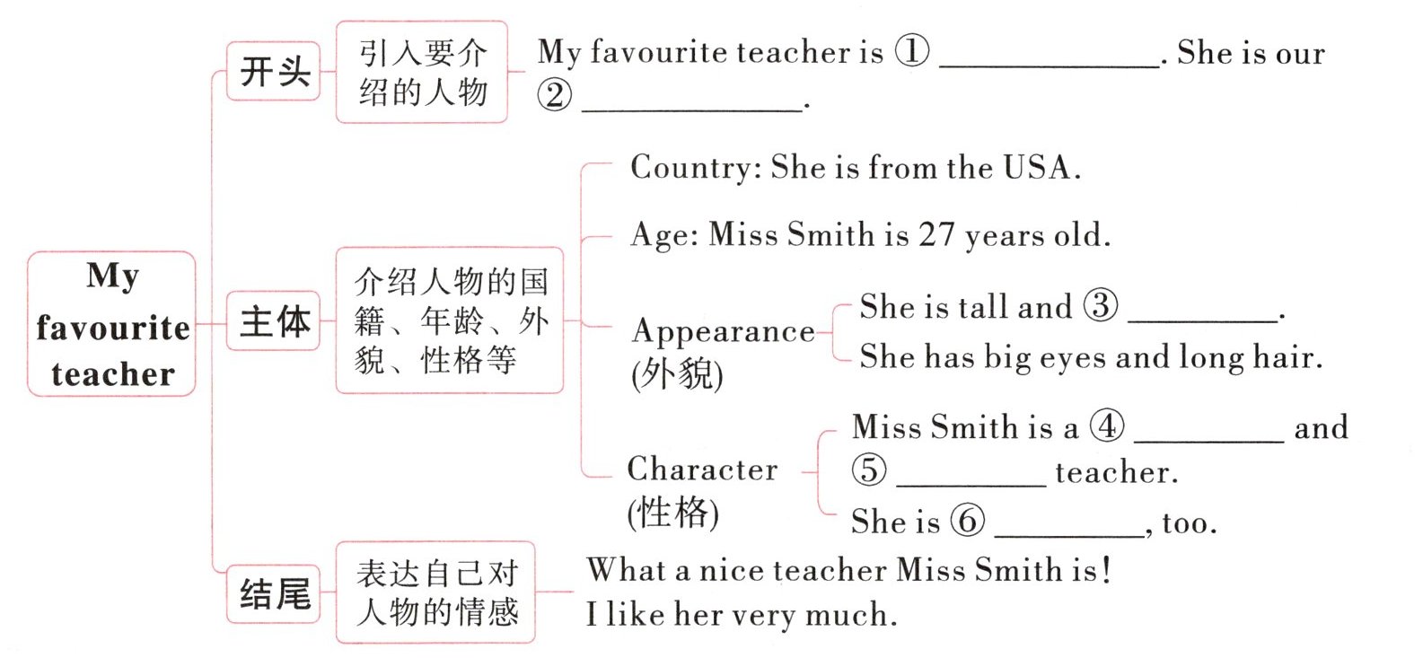 二阶:好词积累 外貌特征类:tall; thin; big eyes; long hair 性格特征类:kind; funny; helpful