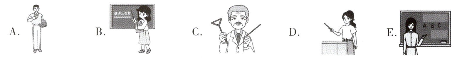 Ⅱ. Read and choose. 为了更加了解任课老师们,妙妙将他们画了下来,请选出与句意相符的图片。
