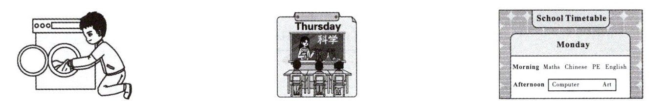 Ⅱ. Listen and number. 奇奇和妹妹在讨论一周的安排,听他们的讨论,用1~5给下列图片排序。(对话听两遍)