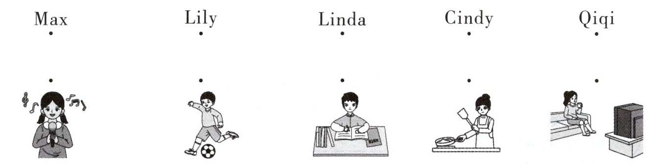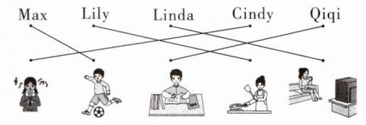 Ⅰ. Listen and match. 听一听奇奇分享自己和朋友的喜好与日程安排,将人名与对应的动作连线。(句子听两遍)