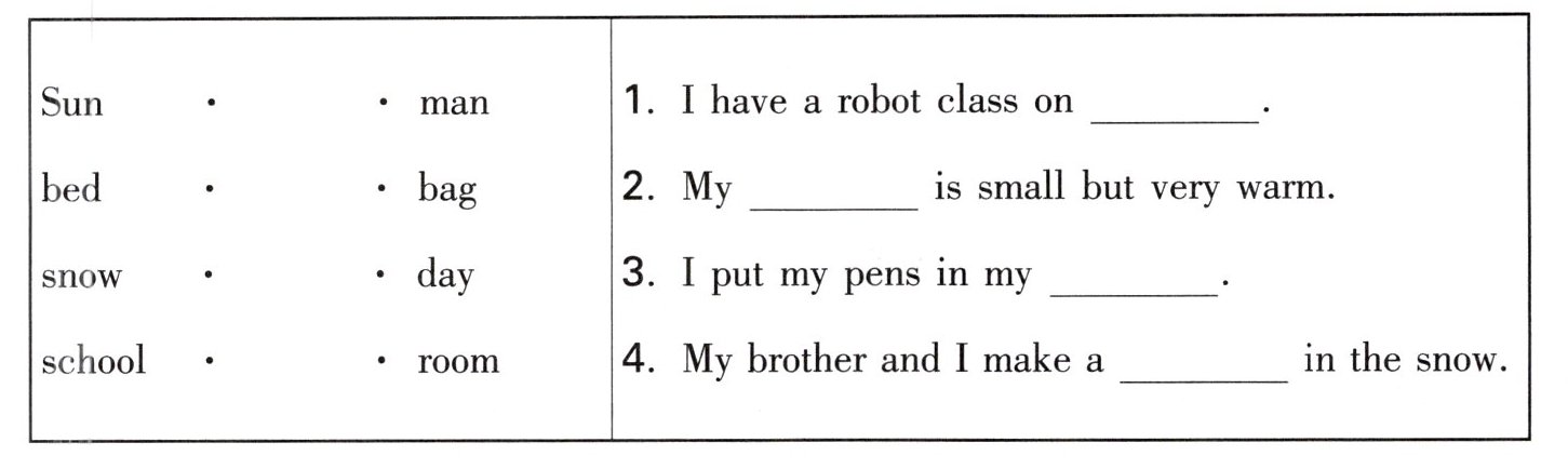 Ⅱ. 连线并将所组成的单词填写在横线上补全下列句子。