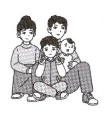 Hello! My name is Qiqi. I am a cute boy. This is my family. Mommy, Daddy, baby brother and I. Mommy is pretty and she likes to eat yellow bananas. Daddy is thirty years old. He is really funny and he always makes us happy. My baby brother has a little body. He likes playing in the park on sunny days. He also likes candy. He wants a piece of candy. I say, "I'm sorry, little baby. No candy for you. But I have many toys. I can give you a yellow car." I love my family. How about your family?