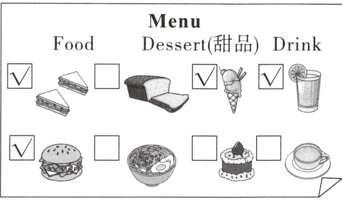 Ⅰ. Read and write. Mike准备去餐厅用餐,根据菜单填写单词补全Mike的点餐。