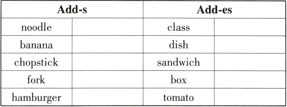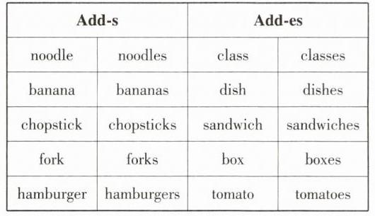 任务一:奇奇和 Alice 的讨论中包含了许多可数名词的复数形式,你找到了吗?请填在表格中吧!