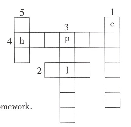 Ⅰ. Read and write. 根据图片和字母提示填写合适的单词,补全同学们的描述并完成字谜。