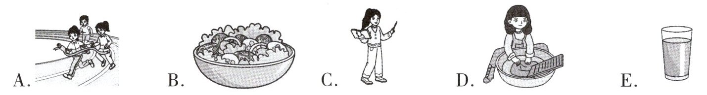 Ⅴ. Read and choose. 同学们各自的活动安排和饮食喜好都有差异,请根据他们的对话选择对应的图片。
