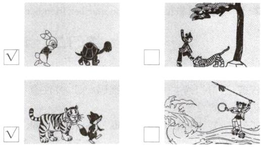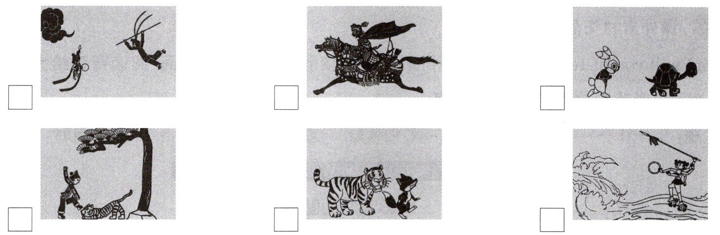 【解析】根据“My brother and I can do many shows, such as...and The Fox and the Tiger.”可知,奇奇和哥哥能够表演《大闹天宫》《愚公移山》《花木兰》《龟兔赛跑》《狐假虎威》等曲目,第四幅图《武松打虎》及第六幅图《哪吒闹海》未提及。