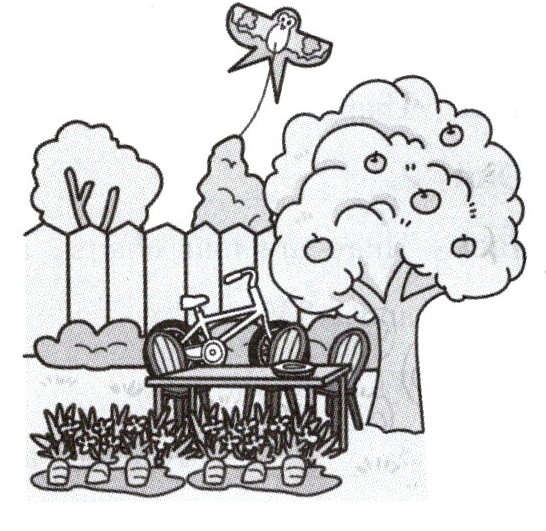 ) the tree, there is a kite. My bike is in the garden, too. 6. ______ (A