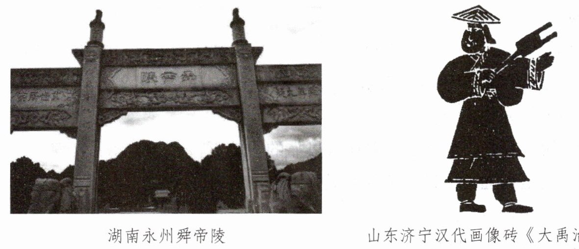材料二:尧的时代发生了滔天洪水,他派鲧(gǔn)去治水,却失败了。鲧偷了天帝的宝物“息壤”(一种可以自己生长不息的土壤),用来堵塞洪水,但洪水更为泛滥,鲧因而被杀。(《山海经》)舜在位的时候任用贤人,派鲧的儿子禹继续治理洪水,并获得了成功。禹在治水时注重采取疏洪泄流的方法,还曾化身为熊去开凿山谷,“随山浚川”(遂公盨[xǔ]铭文),将滞留的洪水尽快疏导到下游湖泊和河水干流中去。这反映了先民曾经历过大洪水等自然灾害的严峻考验,并在治洪等各类灾害应对过程中采取和总结了不同办法,最终勇敢而坚强地战胜了灾害。