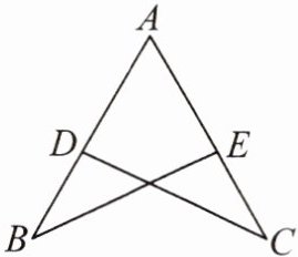 4. 已知:如图,D、E 分别在 AB、AC 上,若 AB = AC,AD = AE,∠A = 60°,∠B = 35°,求∠BDC 的度数。