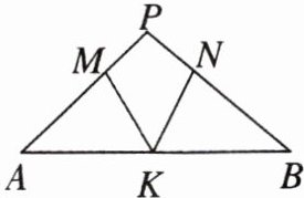 10. (商丘期末改)如图,在△PAB 中,∠A = ∠B,M,N,K 分别是 PA,PB,AB 上的点,且 AM = BK,BN = AK,若∠MKN = 40°,则∠A =