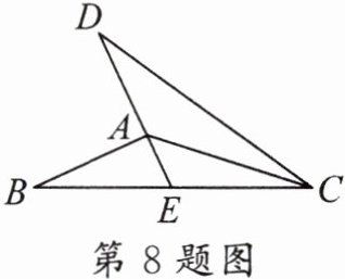 8. 如图,AC 平分∠DCB,CB = CD,DA 的延长线交 BC 于点 E,若∠EAC = 48°,则∠BAE 的度数为(