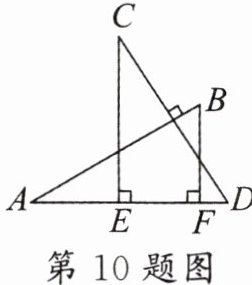 10. 如图,AB ⊥ CD,且 AB = CD.E,F 是 AD 上两点,CE ⊥ AD,BF ⊥ AD. 若 CE = a,BF = b,EF = c,则 AD 的长为 (