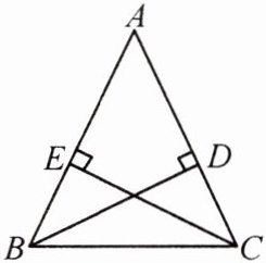 2. (教材例题变式)如图,BD,CE 是 $ \triangle ABC $ 的两条高,且 AD = AE。求证:AB = AC。