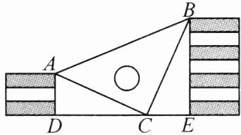 6. 如图,小虎用 10 块高度都是 3 cm 的相同长方体小木块垒了两堵与地面垂直的木墙,木墙之间刚好可以放进一个等腰直角三角尺(AC = BC,$ \angle ACB = 90^{\circ} $),点 C 在 DE 上,点 A 和点 B 分别与木墙的顶端重合,则两堵木墙之间的距离为
