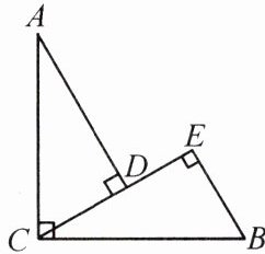 7. 如图,$ \angle ACB = 90^{\circ} $,AC = BC,AD ⊥ CD 于点 D,BE ⊥ CD 交 CD 的延长线于点 E。若 AD = 2x + 3,BE = x + 1,DE = 5,求 x 的值。
