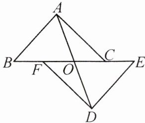 5. (教材习题变式)如图,点 B,F,C,E 在一条直线上,BF = CE,AB // DE,AC // DF,AD 交 BE 于点 O。求证:O 为 AD 的中点。