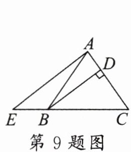 9. (驻马店三模)如图所示,在等腰$\triangle ABC$中,$AB = AC$,$BD为AC$边上的高线,$AE // BD$,且$AE交CB的延长线于点E$。若$\angle BAC = 70^{\circ}$,则$\angle AEC$的度数为(