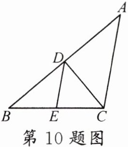 10. (郑州一模)如图,在等腰$\triangle ABC$中,$AC = BC$,$D是AB$边上的中点,$DE // AC$,交$BC于点E$。若$\angle A = 40^{\circ}$,则$\angle CDE$的度数是(