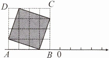 ∴阴影部分正方形的边长是$\sqrt{10}$ 以原点为圆心,正方形的边长为半径画弧,与数轴正半轴交于一点E,如图所示,该点即为所求.