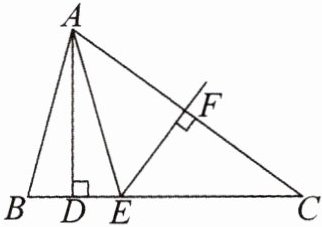 11. 如图,在 $ \triangle ABC $ 中,$ AD \perp BC $,$ EF $ 垂直平分 $ AC $,交 $ AC $ 于点 $ F $,交 $ BC $ 于点 $ E $,且 $ BD = DE $.