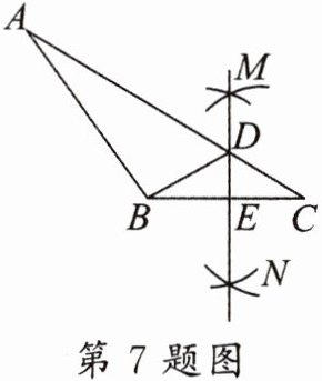 7. (周口校级月考)如图,在 $ \triangle ABC $ 中,分别以点 $ B $ 和点 $ C $ 为圆心,大于 $ \frac{1}{2}BC $ 的长为半径画弧,两弧相交于点 $ M $,$ N $.作直线 $ MN $,交 $ AC $ 于点 $ D $,交 $ BC $ 于点 $ E $,连结 $ BD $.若 $ AC = 16 $,$ BD = 5 $,则 $ AD $ 的长为(