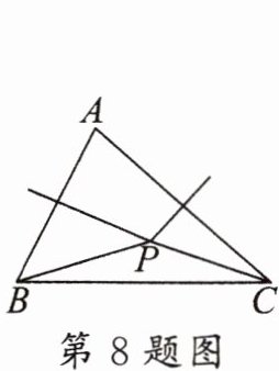 8. (郑州校级期中)如图,在 $ \triangle ABC $ 中,边 $ AB $,$ AC $ 的垂直平分线交于点 $ P $,连结 $ BP $,$ CP $,若 $ \angle A = 75° $,则 $ \angle BPC $ 的度数为(