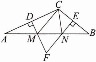 12. (中原区月考)如图,在 $ \triangle ABC $ 中,$ DM $,$ EN $ 分别垂直平分边 $ AC $ 和边 $ BC $,交边 $ AB $ 于 $ M $,$ N $ 两点,$ DM $ 与 $ EN $ 相交于点 $ F $.