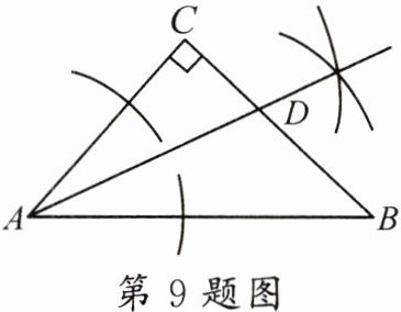 9. 如图,在Rt△ABC中,∠C= 90°,∠BAC= 50°,则根据图中尺规作图的痕迹可知,∠ADB的度数为(