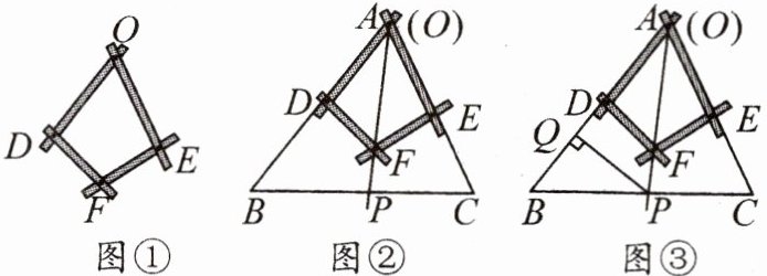 (1)如图②,将仪器放置在△ABC上,使点O与顶点A重合,点D,E分别在边AB,AC上,沿AF画一条射线AP,交BC于点P.AP是∠BAC的平分线吗?请判断并说明理由;