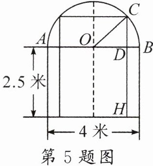 5. (教材例题变式)一辆装满货物,宽为2.4米的卡车,欲通过如图所示的隧道(上方为半圆形),则卡车的外形高必须低于(