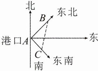 设2小时后沿东北方向行驶的轮船到达B点,沿东南方向行驶的轮船到达C点,连结BC,