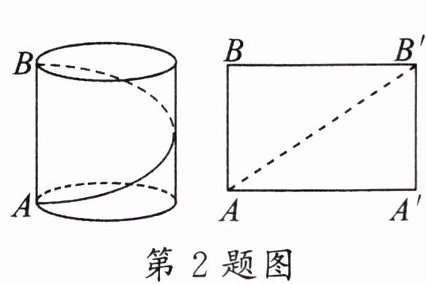 2. 如图,有一圆柱形油罐,已知:油罐的底面周长是12m,高AB是5m,要从A点环绕油罐建梯子,正好到A点的正上方B点,梯子最短需要(