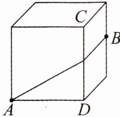 3. 如图,有一个木质正方体装饰品,其棱长为2cm,B为一条棱的中点. 小明同学想从点A经过棱CD到点B修饰一条纹路,则纹路的最短距离是多少?