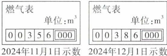 $10. $如图所示$,$燃气表的示数显示了一个三口之家一个月使用天然气的情况。由图中信息可知$,2024$年$11$月$1$日燃气表的读数是