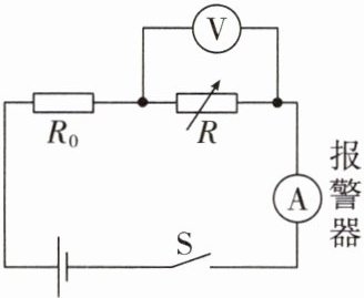 10. 电梯超载容易引发安全隐患,如图所示为超载报警电路简图。电源电压恒定不变,$R_{0}$ 为保护电阻,$R$ 为压敏电阻,阻值大小随电梯内压力增大而减小,电流表的示数超过临界值就会自动报警。电梯正常工作,当有人进入电梯后,则(