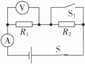 8. (2024 成都七中月考)如图所示的电路中,电源电压不变,开关 $S$ 处于闭合状态。在开关 $S_{1}$ 由断开到闭合的过程中,电路中电流表、电压表的示数将分别(