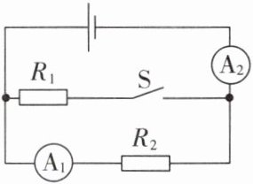 6. 如图所示电路,电源电压不变,当开关 $S$ 由断开到闭合时,两电流表的读数将(