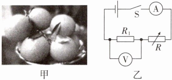 13. (2024 遂宁射洪期中)赣南脐橙名扬海内外,果农用石墨烯制成的甜敏电阻检测脐橙含的糖量,甜敏电阻的阻值随含糖量的升高而增大。如图所示是检测脐橙含糖量的电路,电源电压不变。将甜敏电阻 $R$ 附着在切开的脐橙上,当脐橙含糖量升高时(