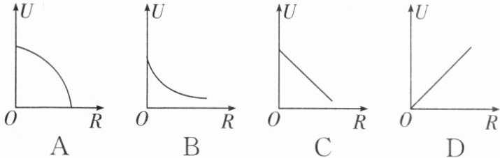 ;利用测得的多组数据,描绘出电压 U 随电阻 R 的变化关系图像如下图,其中正确的是B