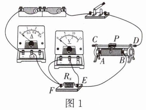 (2)正确连接电路,闭合开关后,发现无论怎样移动滑动变阻器的滑片 P,电流表始终无示数,电压表示数接近电源电压,其原因是____;排除故障后,移动滑片 P,当电压表示数为 1.5 V 时,电流表示数如图 2 所示,则定值电阻 $ R_x = $____Ω。小红认为电阻值已经测出,便开始整理实验器材,她的实验不足之处是____。