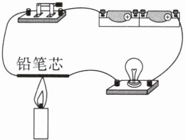 4. (2025成都锦江区期末)小华用导线将小灯泡、铅笔芯、干电池、开关连接成如图所示的电路。他闭合开关后,给铅笔芯加热,发现小灯泡慢慢变亮了,此过程中逐渐增大的物理量是(