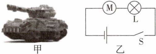 变式2 (2024临沂)图甲是一款能自动变形、万向行走的坦克玩具,其简化电路如图乙所示。该玩具的电源电压为4.5 V,闭合开关后,“0.5 V,0.2 W”的指示灯正常发光,线圈电阻为$0.5\Omega$的电动机正常工作,则(